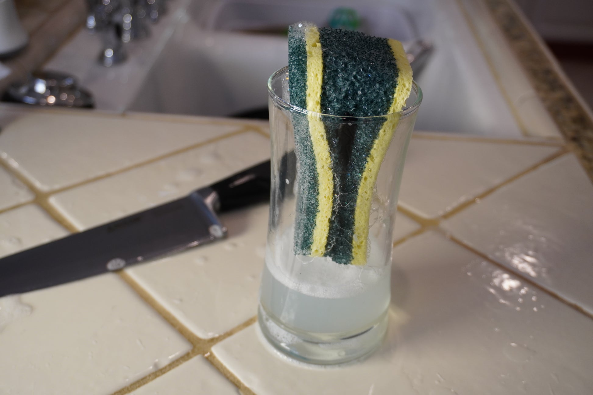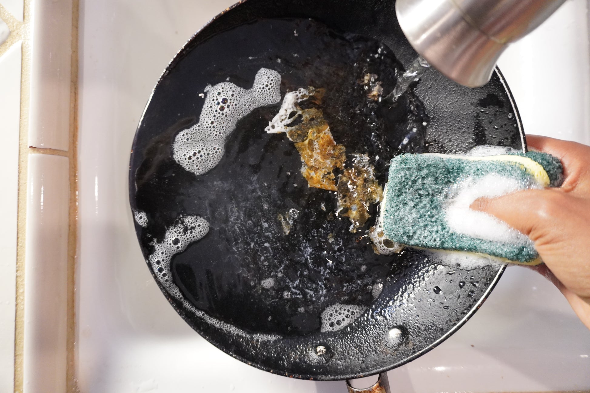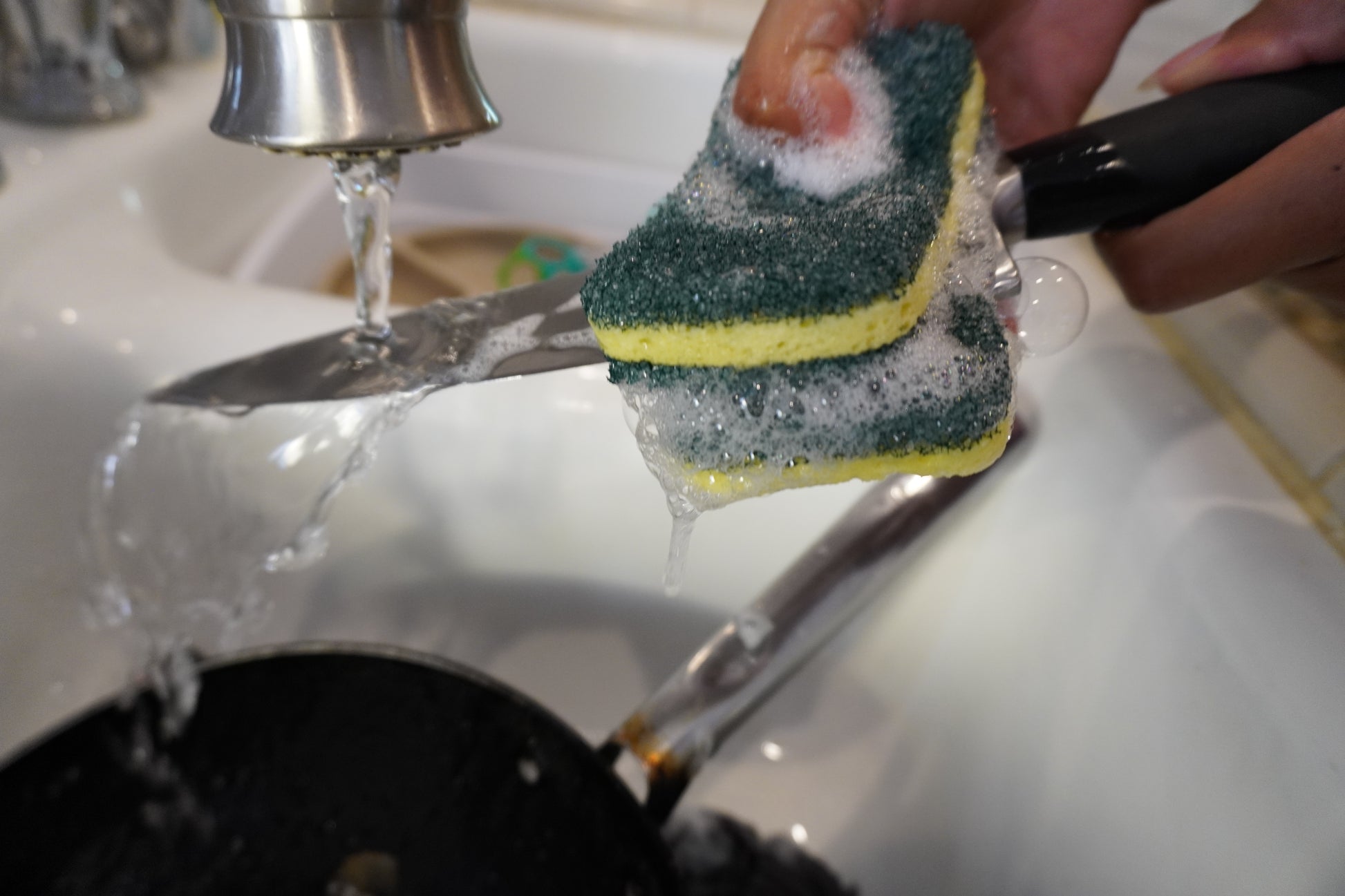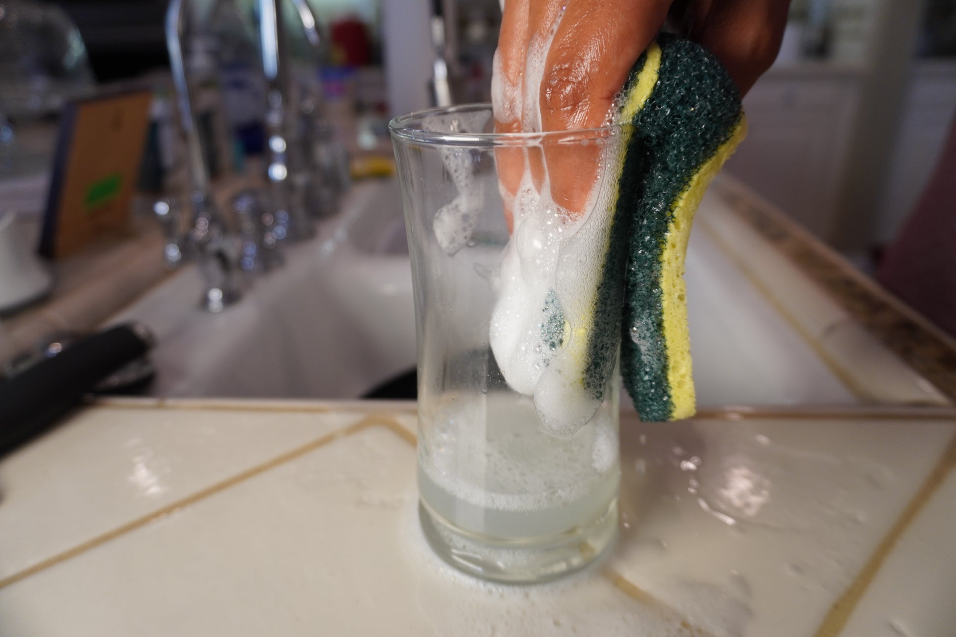 Absorbent Foam Material Laters Up Easily & Soaks Up Dish Soap.